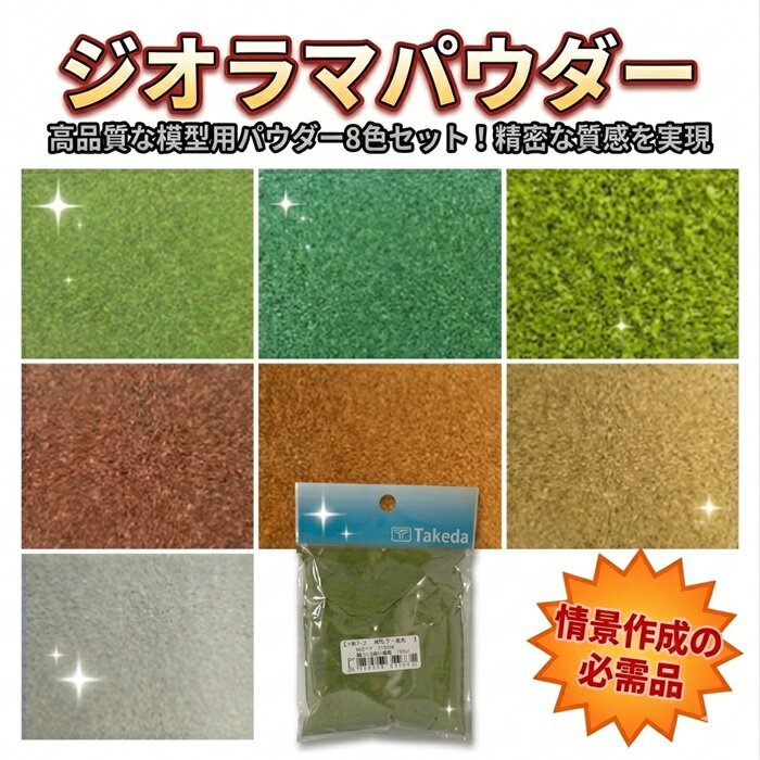 ジオラマ 模型 砂 タケダ ジオラマパウダー 8色 100mm×120mm袋入り takeda 薄緑 緑 薄緑S 玉砂利 茶 薄茶 黄土 白 ( 模型 建築模型 鉄道模型 ジオラマ 工作 モケイ 模型材料 ミニチュア シーナリー ゲージ 自由研究 緑 緑地 土 表現 粉 パウダー 玉砂利 砂利 DIY