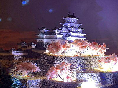 ■[完成品] 姫路城 天守閣周辺のみ ライトアップ仕様 ケース付き (兵庫県姫路市本町)ミニSサイズ 世界遺産 日本の城 日本100名城 お城 ジオラマ 模型 プラモデル 城郭模型